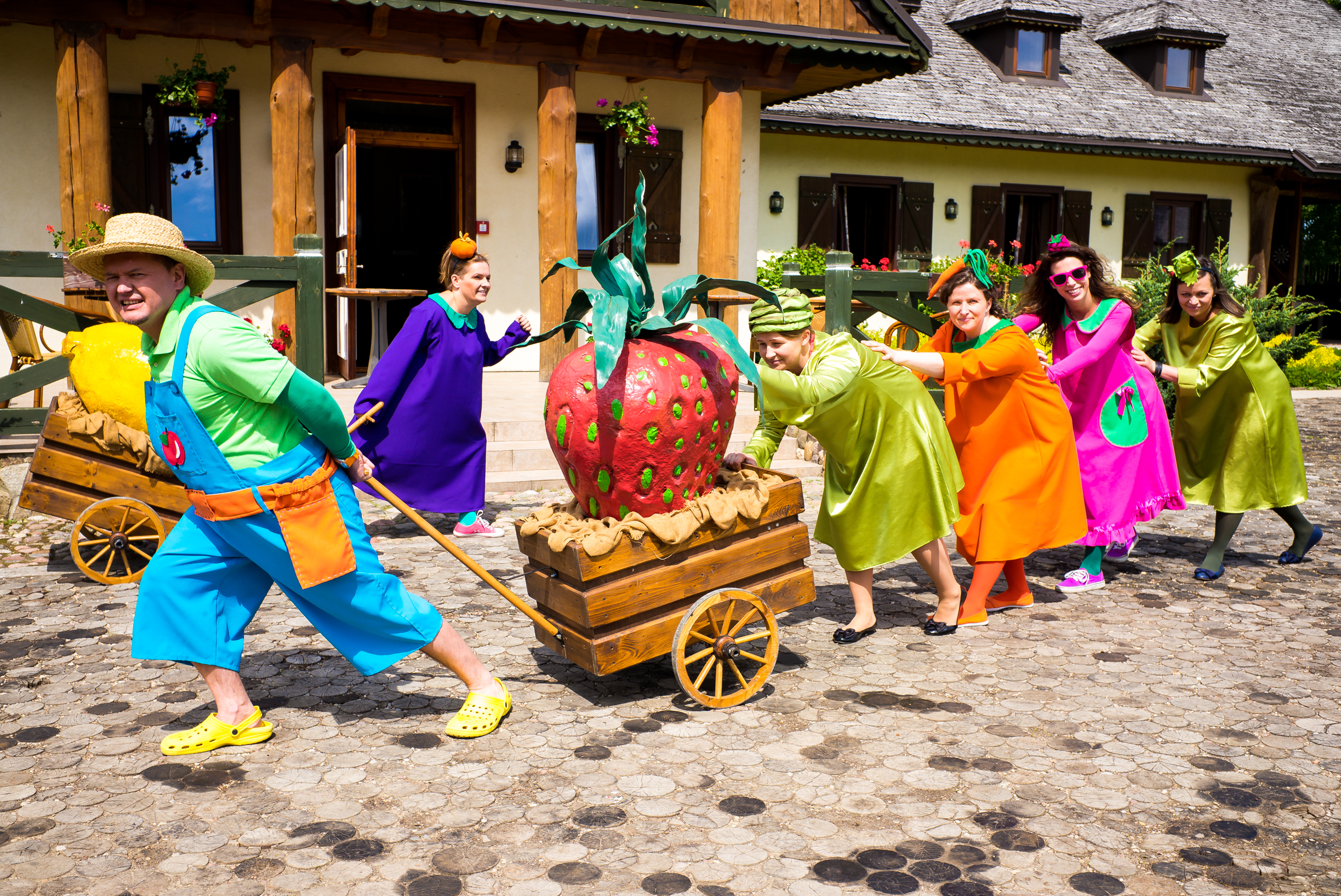 Dysponujemy bazą tematów i setkami kostiumów, jednak za każdym razem piszemy unikalny scenariusz, który dostosowujemy ściśle do potrzeb zleceniodawcy, wymogów sali i otoczenia, a także pory dnia czy pory roku. Jeśli nowy pomysł tego wymaga, przygotowujemy również profesjonalną scenografię i odpowiednie stroje.